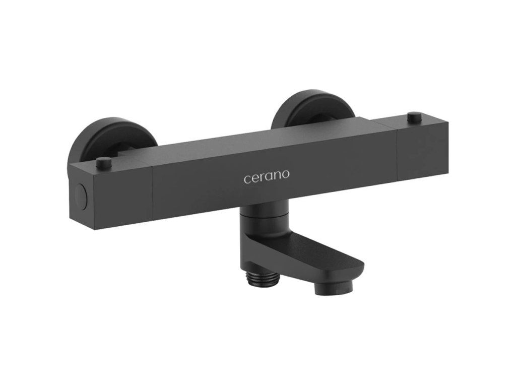 CERANO - Vanová nástěnná baterie Lorena - termostatická - otočný výtok - černá matná