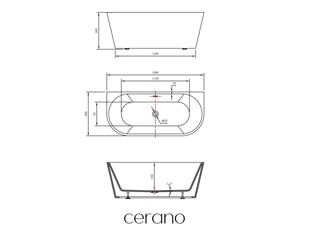 CERANO - Volně stojící akrylátová vana Bianco, nástěnná - bílá lesklá - 180x80 cm