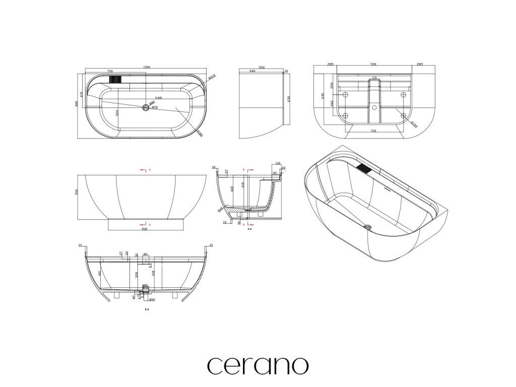 CERANO - Volně stojící vana z litého mramoru Valeria, nástěnná - bílá matná - 150x80 cm