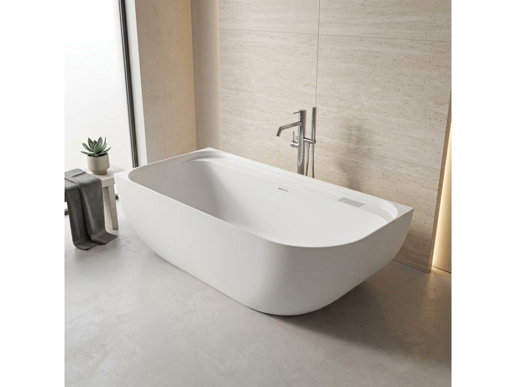 CERANO - Volně stojící vana z litého mramoru Valeria, levá - bílá matná - 150x80 cm