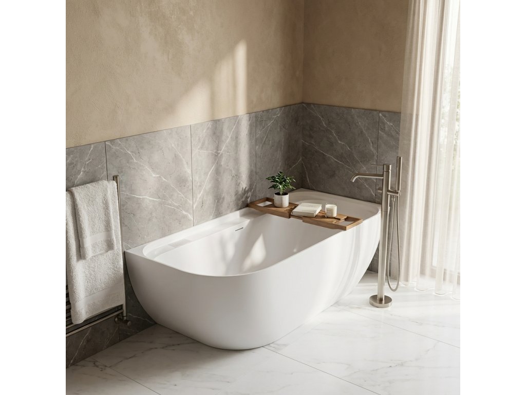 CERANO - Volně stojící vana z litého mramoru Valeria, pravá - bílá matná - 170x82 cm