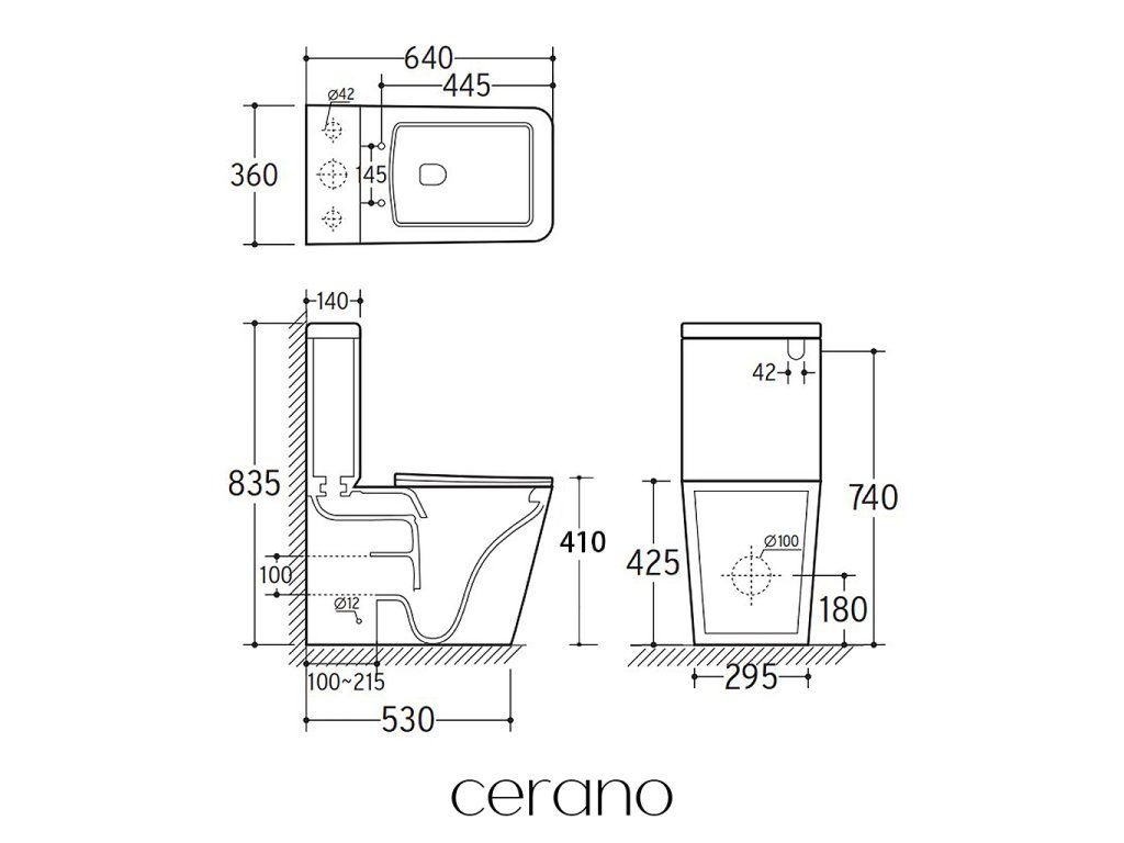 CERANO - WC kombi Bruno, Rimless + Slim/UF sedátko - spodní/zadní odpad- černá matná - 64x36 cm