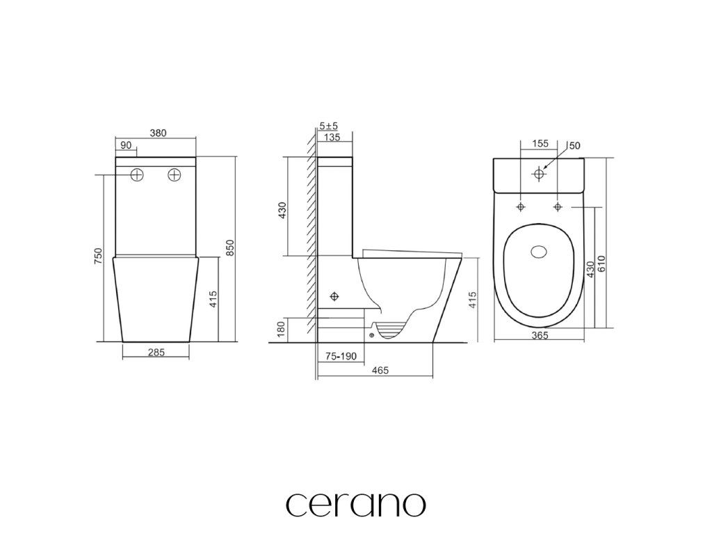 CERANO - WC kombi Carlito, Rimless + Slim/UF sedátko - spodní/zadní odpad - bílá lesklá - 61x36,5 cm