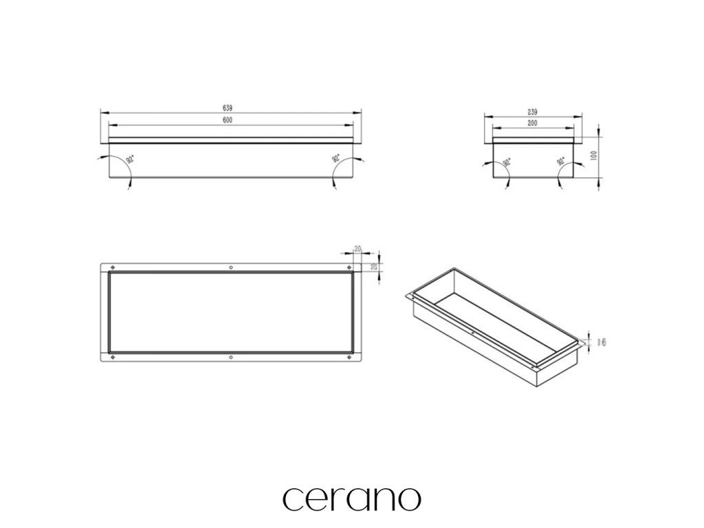 CERANO - Zápustná polička/nika do obkladu - nerezová - 60x20x10 cm