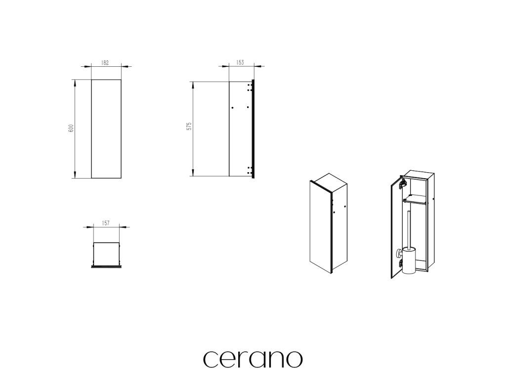 CERANO - Zápustná skříňka na toaletní papír Inova - 1 police - černá matná - 60x18,2x15,3 cm
