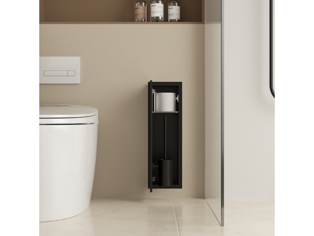 CERANO - Zápustná skříňka na toaletní papír Inova - k obložení - 1 police - černá matná - 61,4x19,6x16 cm