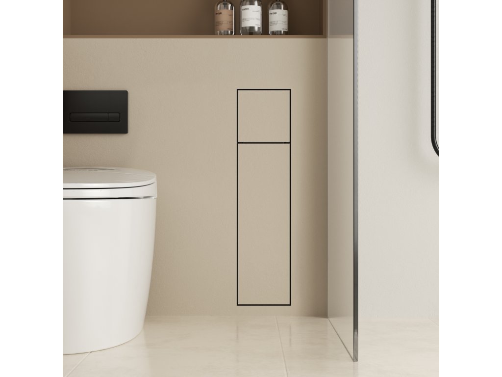 CERANO - Zápustná skříňka na toaletní papír Inova - k obložení - 2 police - černá matná - 78,2x19,6x16 cm