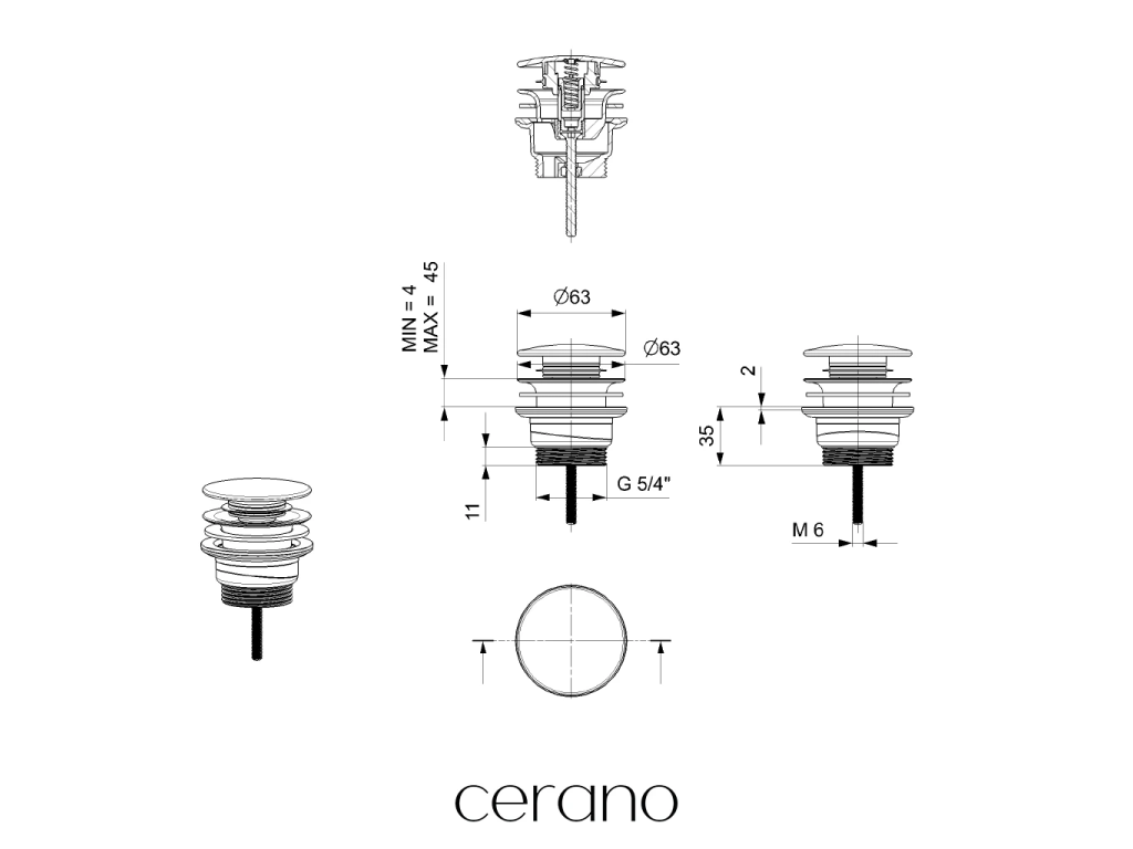 Výrobek je vybaven standardním závitovým připojením 5/4", které zajišťuje kompatibilitu umyvadlových výpustí a sifonů a zároveň usnadňuje jejich vzájemné připojení.
