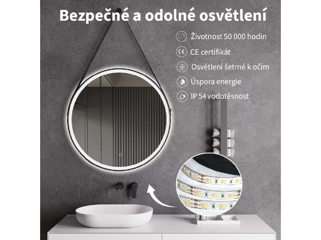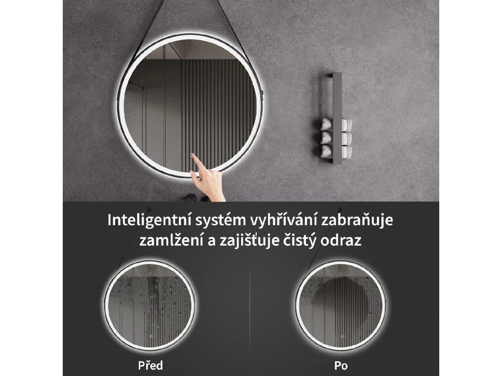 Cerano přináší do vaší koupelny zrcadlo, které spojuje moderní design s vysokou funkčností. Toto závěsné kruhové LED zrcadlo je vybaveno vybaveno elegantním černým rámem v matné úpravě, který dodává vaší koupelně sofistikovaný vzhled.