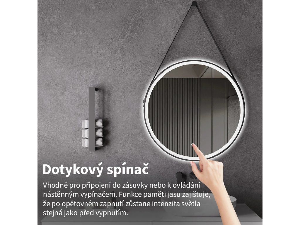 Osvětlení zrcadla lze snadno a pohodlně zapnout dotykem přepínače na panelu zrcadla. Umožňuje rychlé nastavení osvětlení bez nutnosti sahat po vzdálenějším tradičním vypínači.