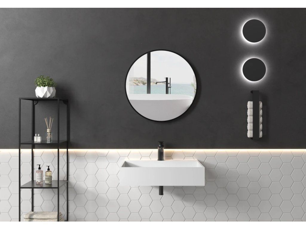 CERANO - Koupelnové zrcadlo Vado, kovový rám - černá matná - Ø 80 cm